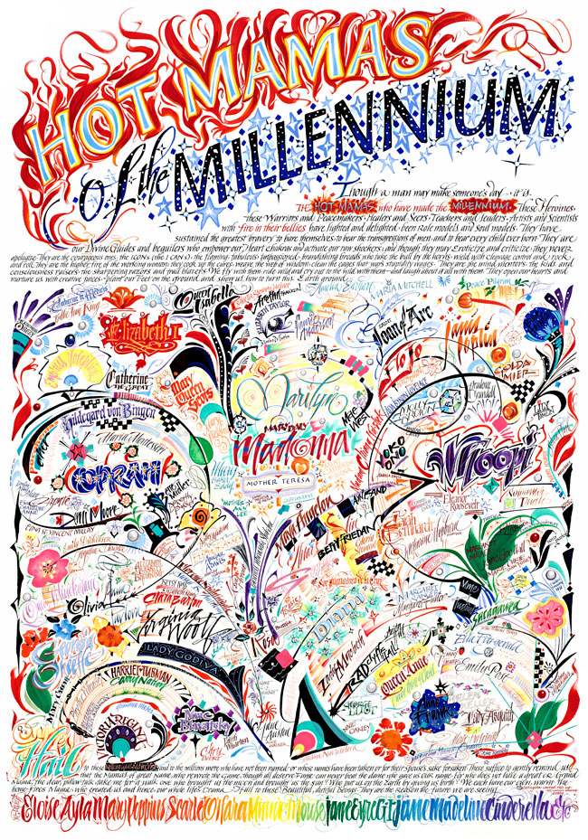 Though a man may make someone’s day, it is the Hot Mamas who have made the Millennium. These Heroines, these Warriors and Peacemakers, Healers and Seers, Teachers, Artists, and Scientists with fire in the bellies have lighted and delighted, been role models and soul models. They have sustained the greatest bravery to bare themselves, to bear the transgressions of men, and to bear every child ever born. They are our Divine Guides and beguilers who empower our Heart Chakras and activate our raw shockers; and though they eroticize and criticize, they never apologize. They are the courageous ones, the ICONs (the I CANs,) the flaming, fabulous, impassioned, brandishing broads who take the bull by the horns, wield with cleavage control and rock and roll. They are the higher fire of the working woman; they cook up the cures, weave the web of wisdom, clean the cages that war’s stupidity wages. They are the mind mentors, the kids and consciousness raisers, the sharpening razors and trail blazers. We fly with them, ride wild and cry out to the wild with them--and laugh about it all with them. They open our hearts and nurture us with creative juices, plant our Feet on the ground and show us how to turn this Earth around.